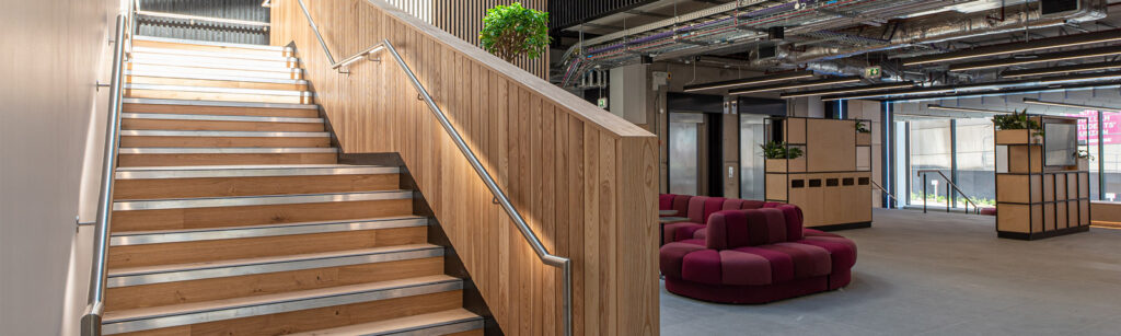 The project demonstrates how integrated handrail lighting can improve safety, enhance wayfinding and integrate seamlessly with modern building design.