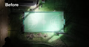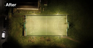 The existing installation had reached the end of its life, with only two of eight fittings still operational. Working with Specialist Engineering Technical Services Ltd (SETS), TRT supplied a new LED scheme using Aspect Floodlights, delivering improved illumination alongside significant energy savings.
